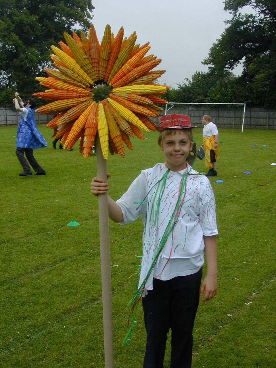 I work with a wide range of materials and processes, but most of my work in schools has involved taking everyday materials like paper cups and corrugated card as a starting point to create spectacular organic forms. Much of my work is very colourful and I have developed a range of novel painting techniques. I have used these techniques to make stage props & scenery, masks, Giants and exotic headdresses.